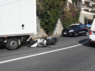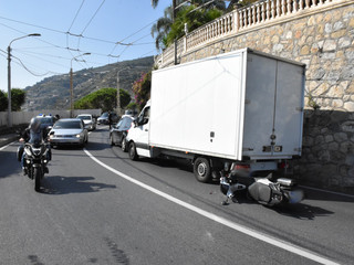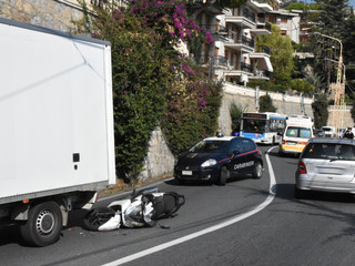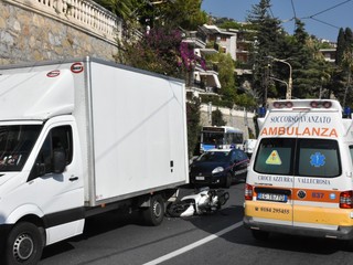 Ospedaletti: incidente sull'Aurelia, uomo in scooter trova veicoli fermi in coda in una curva e non riesce ad evitare l'impatto