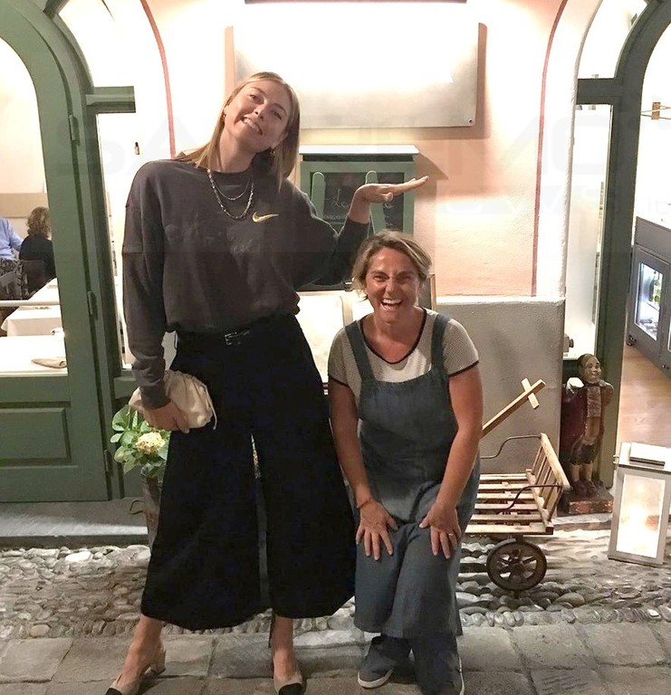 Elegantissima, al termine di una giornata di allenamenti sulla terra rossa, ha cenato al ristorante ‘La Cicala’. Buon pesce e tanta simpatia per Maria che, alla fine, non ha certo disdegnato una foto con la titolare del locale, scherzando anche sulla sua altezza.