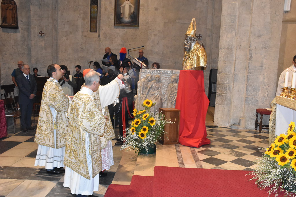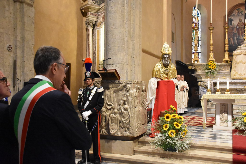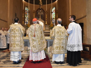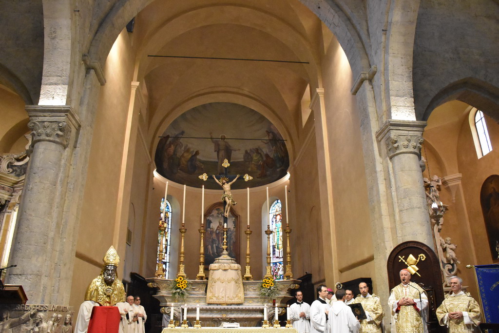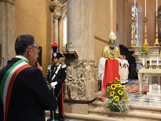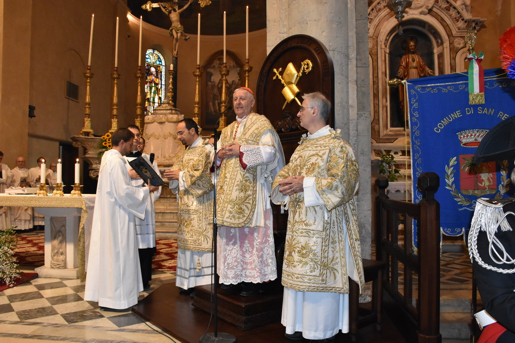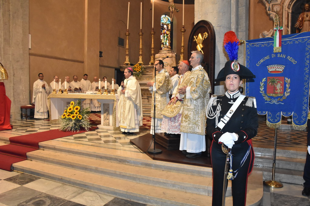 Proseguono gli appuntamenti per il Santo Patrono di Sanremo, San Romolo. Questa mattina si è svolto il momento religioso della festa, quello dedicato alla Santa Messa, officiata alla Concattedrale di San Siro. E' stata presieduta dal Cardinale Giuseppe Versaldi e concelebrata dal Vescovo della Diocesi, Antonio Suetta.
