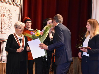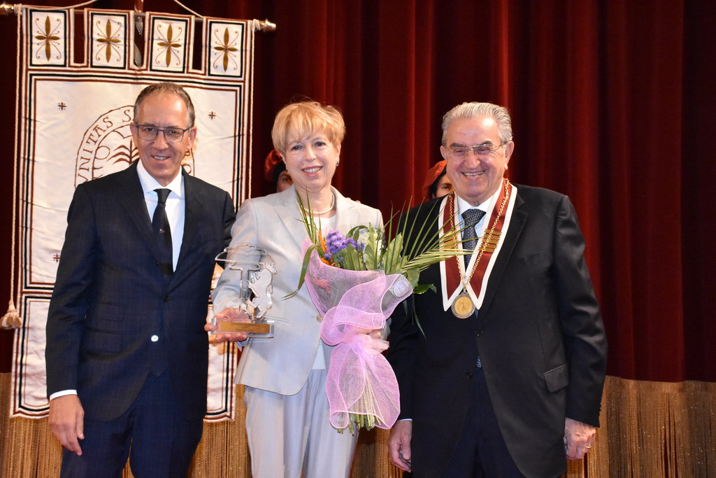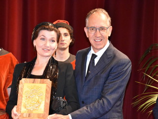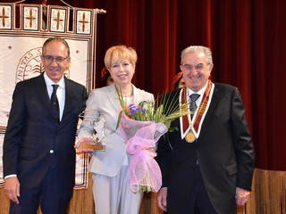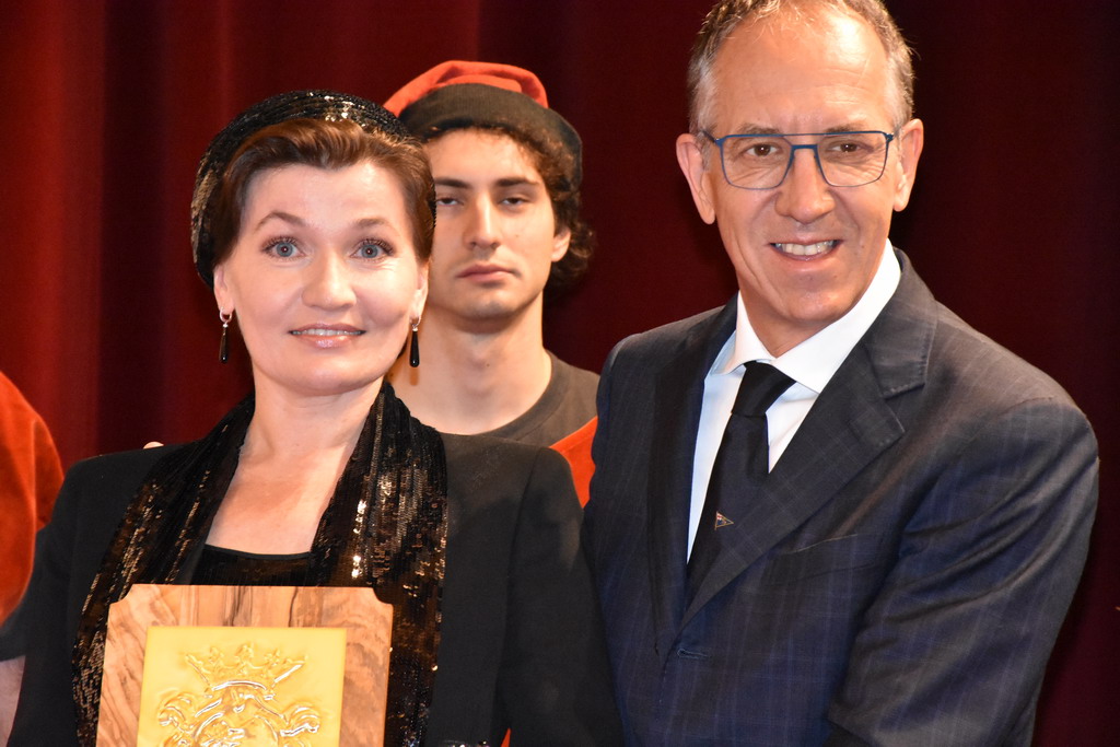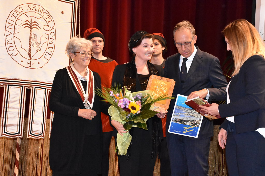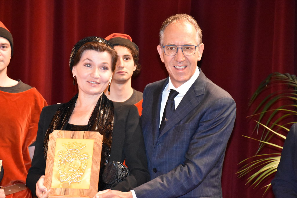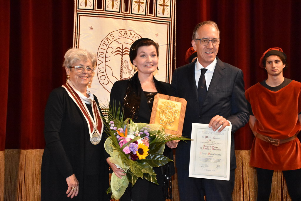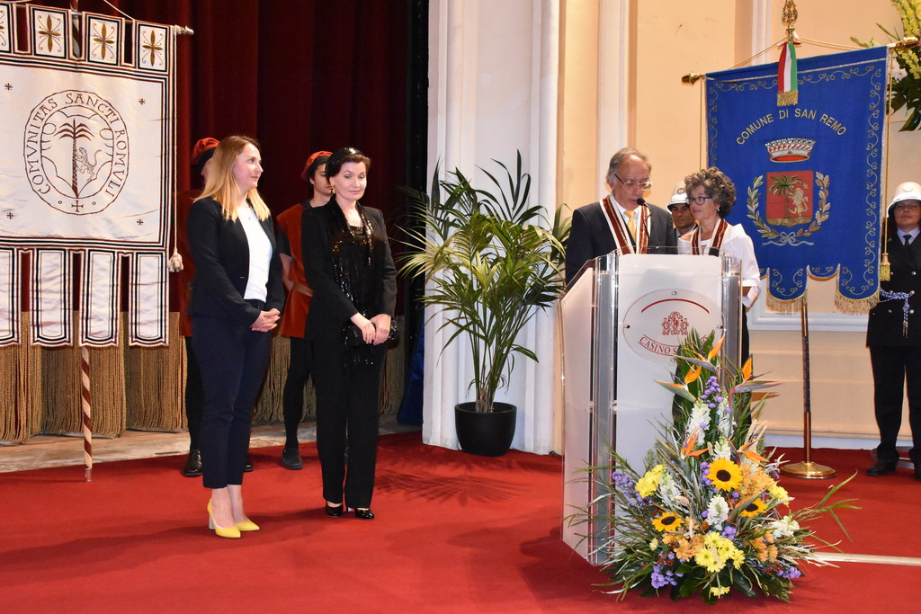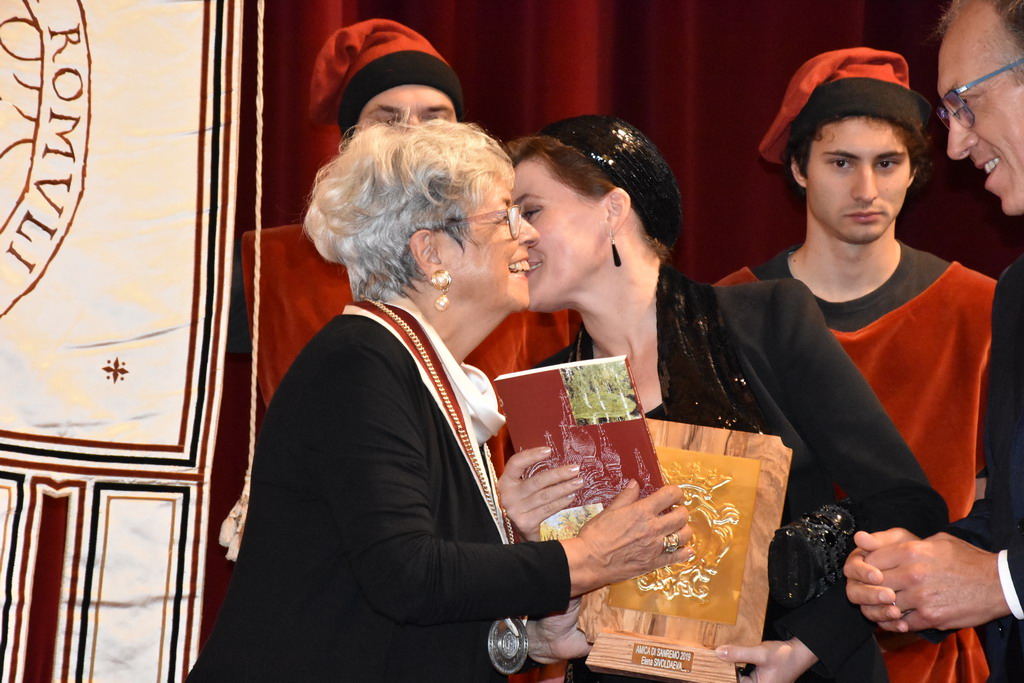 Tra gli ospiti d'onore e con tante persone al seguito, c'era il nuovo ‘Amico di Sanremo’ che quest’anno ha visto il premio ad Elena Sivoldaeva, benefattrice che già ha finanziato diversi progetti in Italia e all’estero e che ha fatto una donazione per pagare i moduli che, per un anno, ospiteranno le medie al Sud-Est, dopo lo ‘sfratto’ dal plesso di corso Cavallotti per i noti motivi di sicurezza. La targa come ‘Amico di Sanremo’ è stata consegnata direttamente dal Sindaco Alberto Biancheri con la motivazione è semplice e nota: “Per quanto ha fatto per la città e per i ragazzi della ‘Pascoli’, in un momento particolare per Sanremo”.