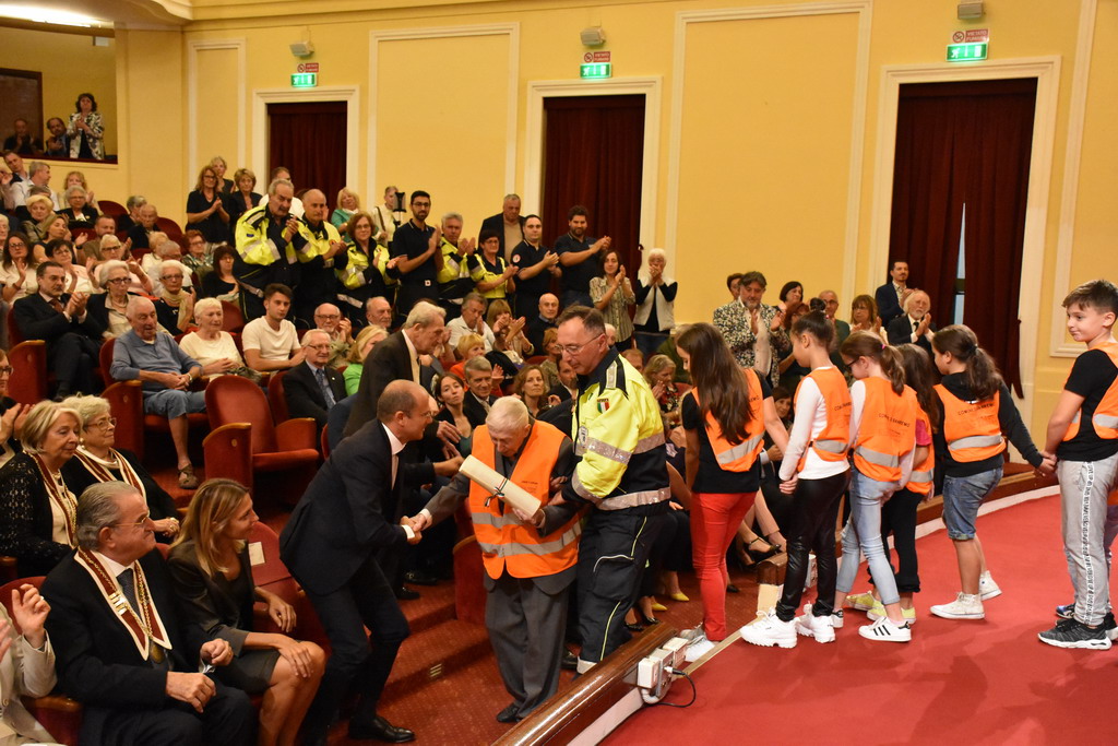 "Nel fare i miei complimenti a tutti i premi San Romolo 2019 - ha detto il Sindaco Alberto Biancheri - che si sono altamente distinti in vari campi, voglio condividere con voi questa foto insieme a Giorgio Gasciarino e Giuliana Bonfante, una coppia che ha dedicato l'intera vita all'aiuto della collettività nell'ambito della Protezione civile e che oggi ha ricevuto il premio San Romolo per le Opere Sociali. Nel rimarcare l'impegno di una vita di Giorgio e Giuliana, portato avanti sempre con il sorriso, voglio ringraziare tutte le donne e gli uomini della ProtezioneCivile per il loro instancabile, silenzioso e determinante lavoro per tutta la comunità, che in questi anni da sindaco ho potuto apprezzare in molti frangenti e che rappresenta una preziosa risorsa per la nostra città e per l'intero Paese".