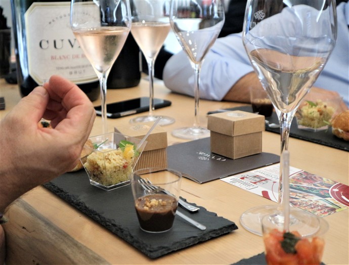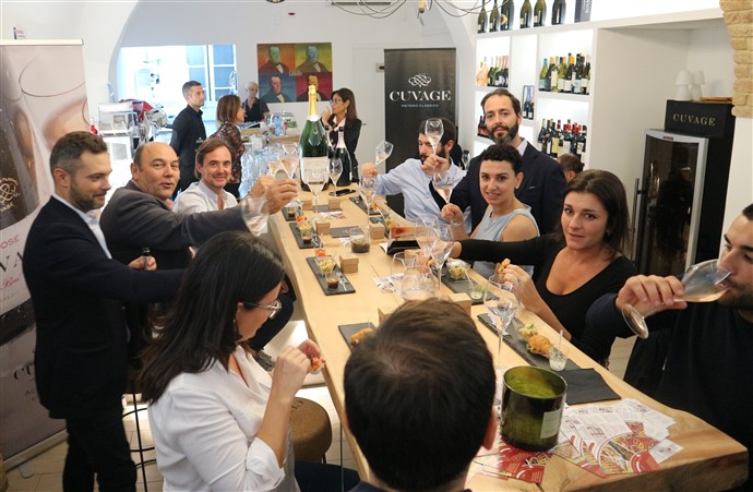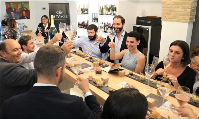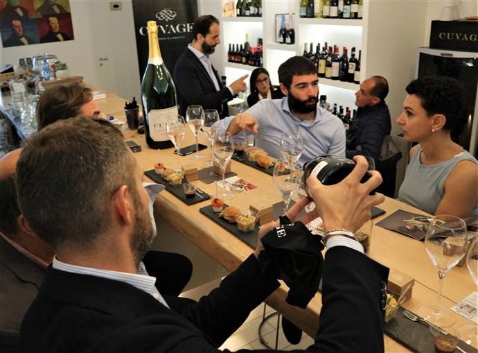 Andrea Battiloro, responsabile marketing dell’azienda Cuvage di Acqui Terme, ha accompagnato i clienti alla scoperta di due importanti novità nel panorama internazionale del mondo dello spumante metodo classico.