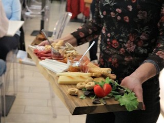 I due vini sono stati accompagnati da una degustazione preparata dallo staff di Camillo che prevedeva: Caprese finger food; mini-Brioches artigianale con speck e rucola; CousCous vegetariano; Polipetti in guazzetto e Bonet con granella di amaretto.