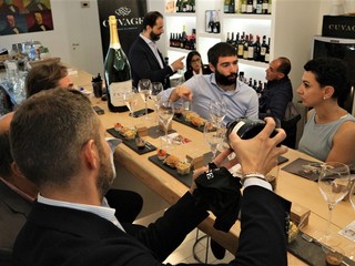 Andrea Battiloro, responsabile marketing dell’azienda Cuvage di Acqui Terme, ha accompagnato i clienti alla scoperta di due importanti novità nel panorama internazionale del mondo dello spumante metodo classico.