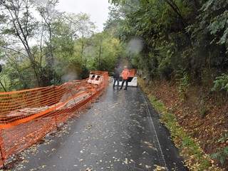 Sopralluogo di Amministrazione, tecnici, Riviera Trasporti, Amaie Energia, Polizia Municipale ed una delegazione di residenti, questa mattina sulla strada per San Romolo, interrotta da venerdì scorso nella zona di Pian della Castagna, a causa dell’allerta meteo ed i corrispondenza del restringimento della carreggiata, dovuto ad un danno provocato dalla caduta di una ruspa di alcuni mesi fa.