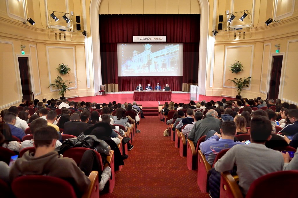 Il teatro del Casino era infatti gremito dagli studenti del Liceo G. B. Cassini, accompagnati dal loro Preside Avv. Claudio Valleggi e dalla Vice Preside Prof. Stefania Sandra, oltre ai ragazzi dell’Istituto 'Ruffini-Aicardi', accompagnati dalla vicepreside Annamaria Richiardi.