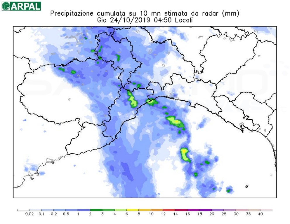 Sembra che quindi che lo ‘spauracchio’ temuto tra le 5 e le 7 sia stato sospinto dai forti venti che hanno spazzato già da ieri l’intera provincia, più ad Est. Le altezze delle precipitazioni, quindi, sono rimaste modeste ed hanno visto il picco a Carpasio con 56 millimetri.