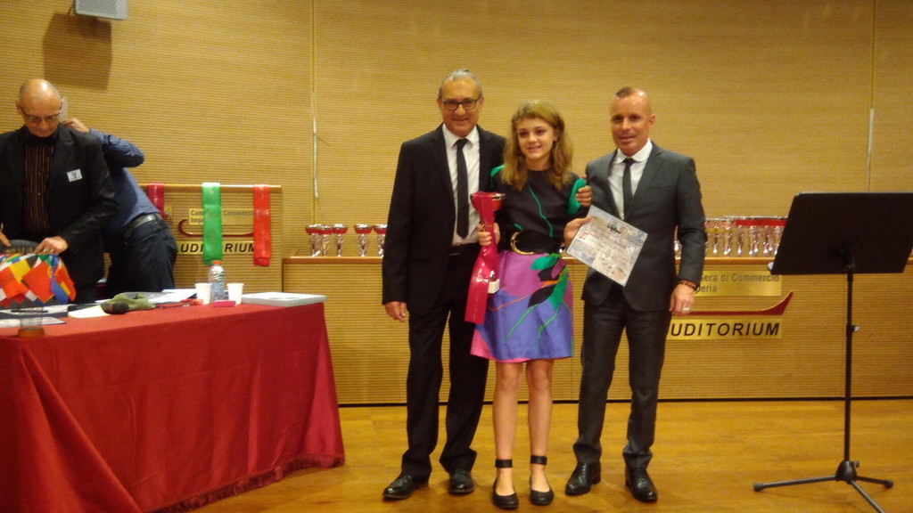 La sanremese Michelle Saladini di Rovetino, allieva del Prof. Leonardo Ferretti Gallino è arrivata prima aggiudicandosi la coppa Europa di Pianoforte, unica tra tutte le italiane in gara. Grande gioia dopo la tensione della performance, un risultato comunque che non è una sorpresa dopo i precedenti trionfi al concorso di Albenga dell'anno scorso che l'ha vista aggiudicarsi a mani basse il primo premio. Qui le immagini di Michelle vincitrice con gli organizzatori e il suo Maestro.