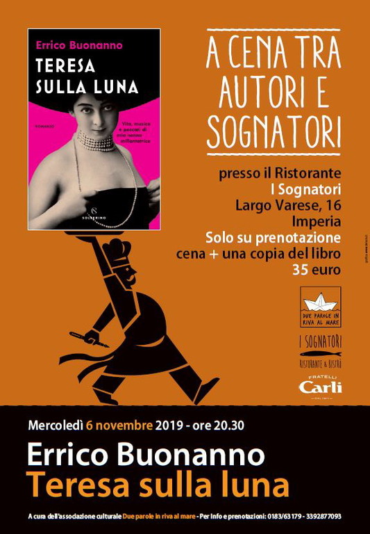 ..e se uno scrittore si sedesse a tavola con voi e vi raccontasse il suo libro? Una cena con uno scrittore, per chiacchierare con lui del suo romanzo e dei suoi personaggi, assaporando cibi deliziosi!! Non una semplice presentazione, ma un vero e proprio Incontro! Vi aspettiamo Mercoledì 6 novembre alle ore 20.30 per cenare con Errico Buonanno e i personaggi del suo libro ‘Teresa sulla luna. Vita, musica e peccati della mi nonna millantatrice’, Solferino editore. Evento a cura de #lalibraiaNadia dell'associazione culturale Due parole in riva al mare.