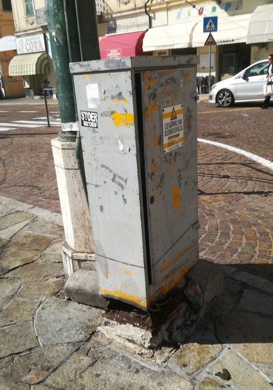 Piccolo ma importante intervento per l'arredo urbano di piazza Colombo. L'ufficio Lavori Pubblici e l'assessore competente Massimo Donzella hanno disposto la rimozione della vecchia e abbandonata centralina semaforica di piazza Colombo. Un sistema che non era in funzione da anni, ma aveva lasciato lì vicino una traccia ben visibile di sé.