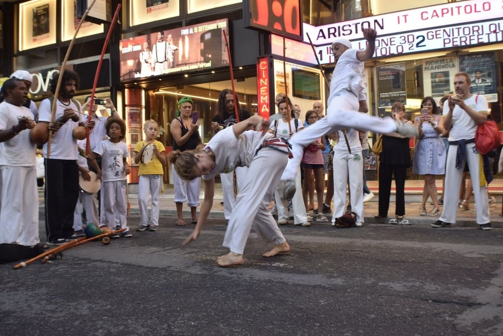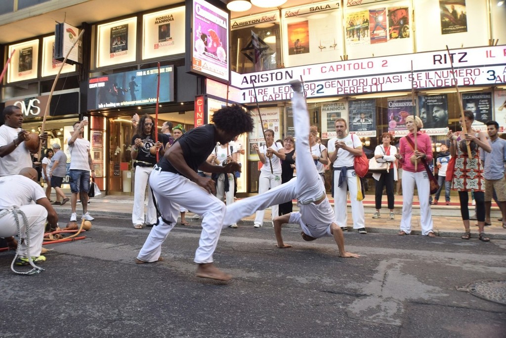 La Capoeira invece, nasce dagli schiavi brasiliani come mezzo di autodifesa, camuffata da danza attraverso l’uso di strumenti a percussioni, per poi diventare arte popolare di strada delle periferie e favelas brasiliane. Oggi è uno sport pre-olimpico praticato da migliaia di persone in tutto il mondo. La Capoeira è un insieme di lotta, danza e musica che si fondono insieme dando vita al “jogo”, infatti si dice giocare Capoeira, perché la filosofia che è a monte di questa disciplina è il saper giocare e ridere davanti ad ogni avversità, così come davanti al tuo avversario anche in un momento di gioco pericoloso, mantenendo sempre l’allegria ed il sorriso.