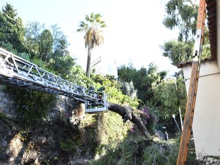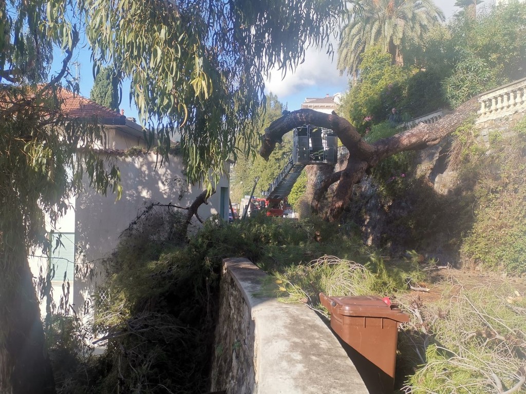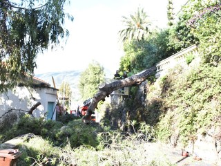 Ospedaletti: grosso albero cade nella notte su un garage tra via dei Pepi e via delle Palme (Foto e Video)