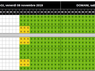 Domani: il transito di un asse di saccatura con aria piuttosto fredda in quota favorisce ancora condizioni di spiccata instabilità con possibili rovesci o temporali sparsi fino al pomeriggio anche associati a grandine, più probabili su Centro-Levante. Bassa probabilità di temporali forti con possibili allagamenti localizzati danni puntuali per isolate raffiche di vento o trombe d'aria, fulmini, piccoli smottamenti. Venti localmente forti dai quadranti settentrionali su ABD, da Sud-Est su C in mattinata. Mare molto mosso in graduale scaduta.