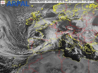 La formazione di un minimo depressionario sulla Costa Azzurra favorirà, tra il pomeriggio e la serata di oggi, il rinforzo dei venti da Sud Est, forieri di precipitazioni che saranno a carattere di rovescio o temporale in particolare sul centro e sul Ponente della regione.