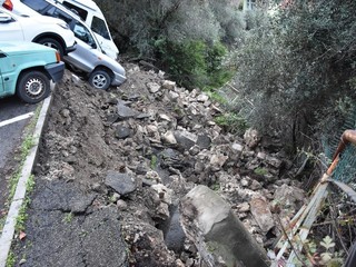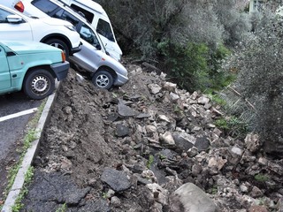Sanremo: smottamento di terreno in via Goethe, crolla una parte della strada, macchine parcheggiate in bilico (Foto)