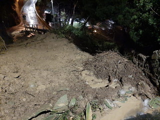 Danni ingenti a Ventimiglia provocati dalla pioggia. Via Bandette è chiusa e la zona isolata. Sul posto sono presenti la Polizia Locale e l’ufficio tecnico.