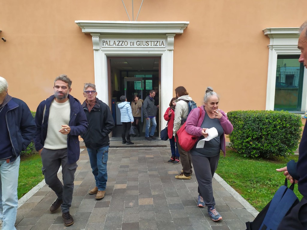 All'uscita dal tribunale, alcuni dei solidali che hanno seguito le udienze insieme agli imputati, carta igienica alla mano, hanno salutato Salvini, con tanto di 'bacioni'.