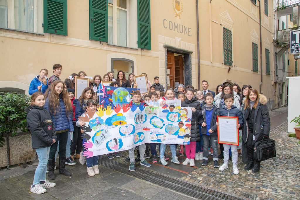 Il cammino verso l’istituzione del Consiglio Comunale dei Ragazzi parte non in un giorno qualsiasi. Infatti oggi, 20 novembre, ricorre la Giornata Nazionale dei Diritti dell’Infanzia e dell’Adolescenza. Per l’occasione i bambini delle scuole elementari e medie sono stati invitati in municipio dall’amministrazione del sindaco Matteo Orengo. Ad accoglierli c’era la consigliera comunale Luisa Palumbo, l'assessore Giuseppina Laigueglia e la consigliera comunale Giovanna Sabrina Brezzo ed è intervenuta anche Valeria Lanteri, la responsabile del CCR per l'Istituto Comprensivo di Taggia.