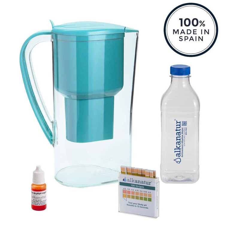 Caraffa fabbricata totalmente in Europa. Depura, alcalinizza e ionizza l’acqua del rubinetto, Certificata da studi universitari e dalle più stringenti norme europee, disegno innovativo, filtrazione rapida: 1/2 litro in 2 minuti e 13 secondi. Venduta con bottiglia per frigorifero, priva di Bisfenolo-A e Ftalati, non contiene disruttori ormonali, porta l’acqua a un PH Alcalino compreso tra 8,5 e 9,5, potente capacità antiossidante certificata. Ottimo gusto privo di cloro e metalli pesanti, antibatterica, costo medio e a regime per litro 0,045€, durata del filtro: 400l. Garanzia vitalizia.