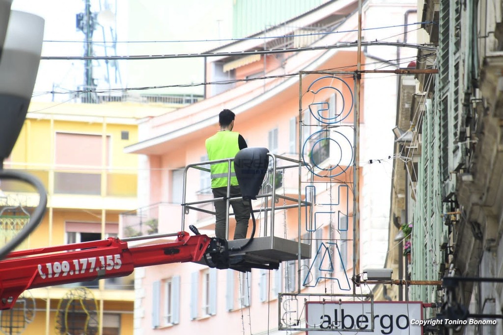 È iniziata questa mattina l'installazione delle luminarie di Natale in via Matteotti. L'impresa che si è aggiudicata il servizio sta sistemando le luci che abbelliranno il 'salotto buono' non solo per il Natale e per le feste di fine anno, ma anche fino al Festival, come da tradizione.