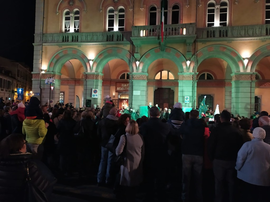 Questa sera ad Oneglia, nella centralissima Piazza Dante, sono state accese le luminarie natalizie di tutta la Città. Una cerimonia intitolata “Si accende la Città” che rientra nel programma del pomeriggio di festa per San Leonardo.