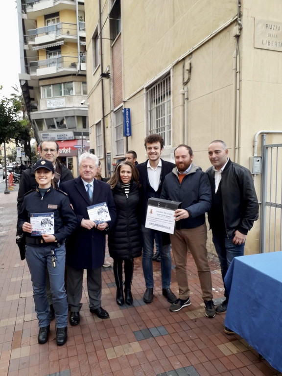 Sanremo. Gazebo in corso Matteotti. Insieme al personale del Commissariato, le ragazze del liceo Cassini e delle squadre femminili di canoa, canottaggio, rugby e nuoto.
