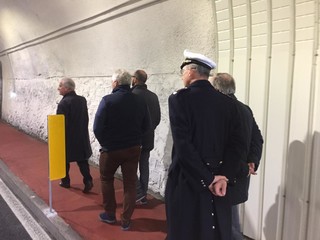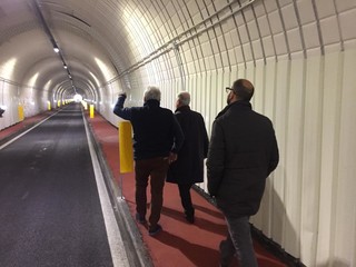 A fare il primo attraversamento della galleria post restyling il sindaco Claudio Scajola, accompagnato dagli assessori Antonio Gagliano e Simone Vassallo oltre che dai rappresentanti della ditta che ha eseguito l'opera e dal comandante della Polizia Municipale Aldo Bergaminelli.