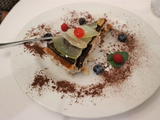 Sempre presenti anche secondi di carne, come la lombata di vitello con salsa al caffè e pere caramellate. (dai 20 ai 25 euro). Ottimi i dolci sempre diversi, come le squisite le pesche ripiene con amaretto e rosolio, e la cassata siciliana rivisitata, e un’incredibile insalata di frutta fresca.