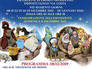 L’iniziativa dei presepi artigianali denominata “Sulla Via dei Re Magi”, promossa dalla Parrocchia di San Sebastiano, si svilupperà lungo via Costa dalle ore 10 alle ore 18 nei seguenti giorni: 08-15-22-25-26-29 dicembre 2019 e 6 gennaio 2020.
