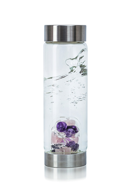 La tua acqua viene caricata con pura essenza di cristallo, e il tappo con cordicella lo rende facile da trasportare ovunque tu vada.