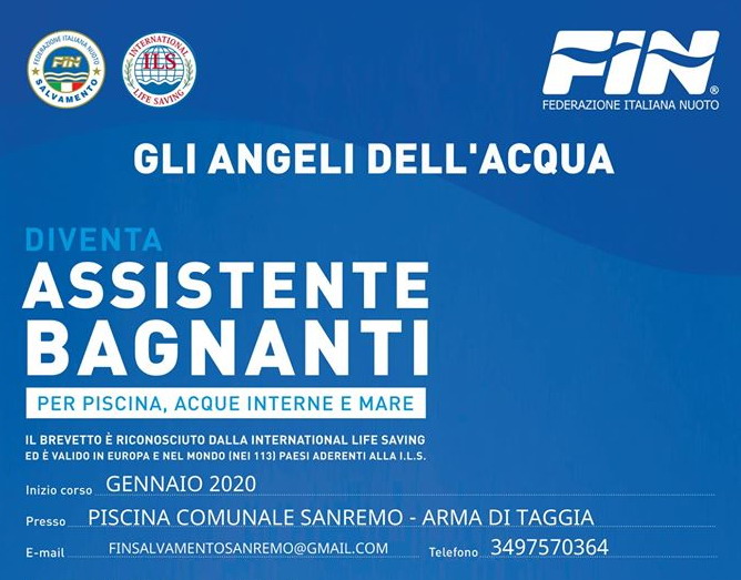 Il corso inizierà a Gennaio 2020 e sarà tenuto dall’allenatore di nuoto per salvamento Roberto Po, allenatore di 2° livello e docente del settore Istruzione Tecnica della Federazione Italiana Nuoto. Per informazioni 3497570364 o finsalvamentosanremo@gmail.com.