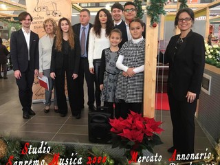 I palchetti e rossi, come palline di un grande albero, dedicano alla magia natalizia la loro musica. Lo studio ‘Sanremo Musica 2000’, diretto dalla professoressa Erica Martini, presente ogni martedì al mercato annonario e ogni sabato in via Matteotti all’incrocio con via Corradi, ne è ormai una piacevole consuetudine.