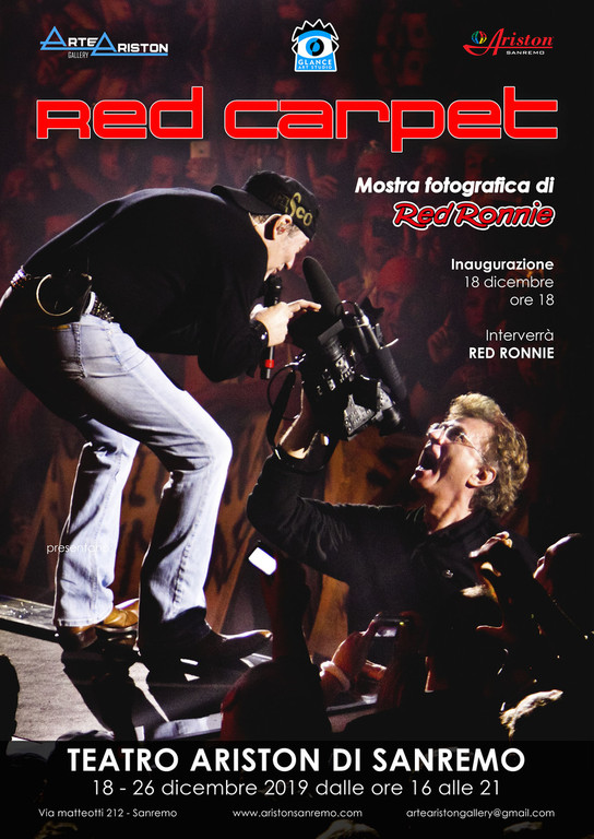 A seguito dell’accensione del numero 70, all’interno delle sale espositive del teatro, si terrà il vernissage inaugurale di “Red Carpet”, mostra fotografica a cura di Red Ronnie che per la prima volta espone quaranta delle foto scattate a personaggi del mondo della musica e dello spettacolo nel corso della sua carriera di giornalista e critico musicale. L’esposizione rimarrà visitabile nella Sala Incontri del Teatro Ariston, negli spazi del soppalco sopra il bar, dal 18 al 26 dicembre (orario 16-21).