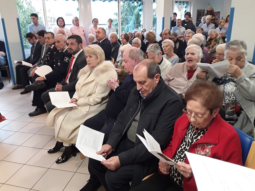 Al termine della S. Messa il Presidente della Fondazione, commosso, ha consegnato una targa di riconoscimento per i 25 anni di attività al Direttore Mauro Vicenzi, che stupito ed emozionato ha ringraziato chi intorno a lui ha lavorato sempre duramente in questi anni per permettere alla Casa di proseguire in tutte le sue attività per il benessere degli Ospiti. Le autorità hanno condiviso, all’interno della Residenza, il tradizionale pranzo conviviale a cui ha fatto seguito il consueto scambio degli auguri per un Santo Natale e un Felice Anno Nuovo alla presenza dell’immancabile torta a sorpresa, mirabilmente preparata dalle cuoche della struttura e accompagnata da tutto il personale in divisa.