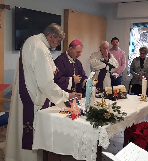 Giovedì 19 dicembre, nella RSA Casa Rachele di Vallecrosia, mons. Antonio Suetta, Vescovo della Diocesi di Ventimiglia – San Remo, ha celebrato la Santa Messa di preparazione al Natale portando il proprio augurio agli ospiti della struttura. Il Vescovo è stato accolto dal Presidente della Fondazione Rachele Zitomirski, il Geom. Rocco Noto, dal Direttore Mauro Vicenzi, dal Presidente della Cooperativa Zivia Diego Cricca, dagli Ospiti, dai familiari, dai Volontari dell’AVO e dal personale di tutta la RSA.