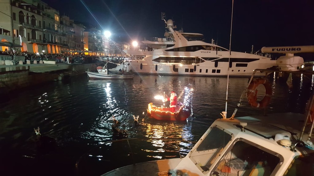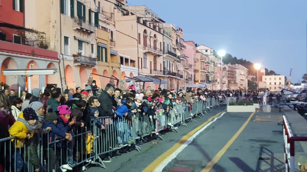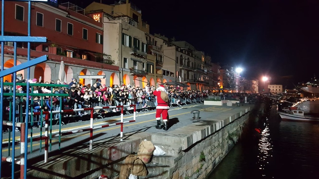 L'evento è iniziato alle 15 con un'esibizione di ginnastica artistica da parte dell'ASD Niche. La slitta è arrivata in concomitanza con il calare del sole. Babbo Natale si è poi fermato per le fotografie nella casetta, novità di quest'anno, allestita all'interno del mercatino di Banchina Aicardi.