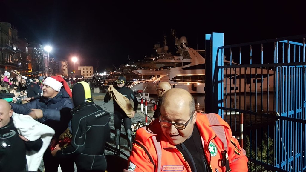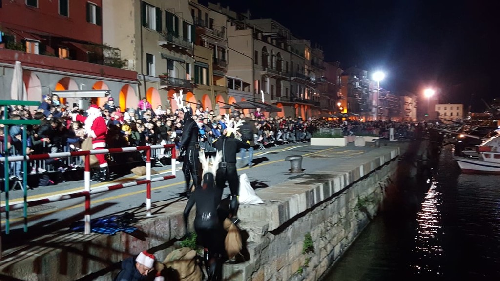 Grande festa questo pomeriggio per l'arrivo del Babbo Natale sub. L'evento, organizzato in collaborazione tra Comune, Imperia nel Blu e Capitaneria di Porto, si è svolto in calata Cuneo a Oneglia. Una slitta trainata da sei 'renne subacquee è arrivata dal mare con tanti doni per i bambini presenti sulla banchina.