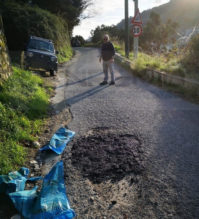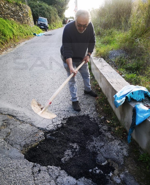 Oggi pomeriggio Antonio Cassini, ‘armato’ di asfalto e pala, ha sistemato una delle tante strade comunali comune di Dolceacqua: “Da troppo tempo sono sotto gli occhi di tutti – prosegue il Consigliere Igor Cassini – ed oggi è stata messa mano alla strada comunale in direzione ‘Addolorata’ in regione Morghe. Antonio Cassini, ex sovrintendente di Polizia Provinciale e dolceacquino Doc, ha provveduto da solo ed a proprie spese alla manutenzione di diverse buche molto profonde che si erano create da diversi mesi e peggiorate con le ultime piogge”.
