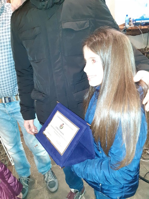 Alla piccola è stata consegnata da parte dei rappresentanti dell'Amministrazione Comunale presenti, Vice Sindaco, Mattia Arnaldi e l'Assessore Gianmarco Secondo, a nome di tutta la comunità un targa di riconoscimento e ricordo del momento.