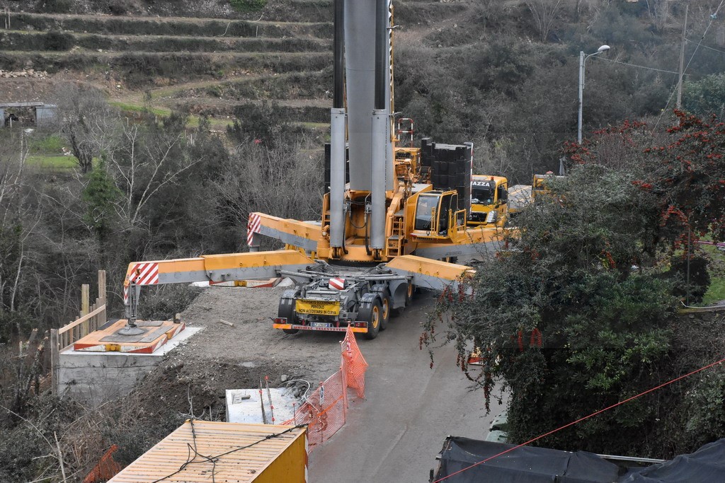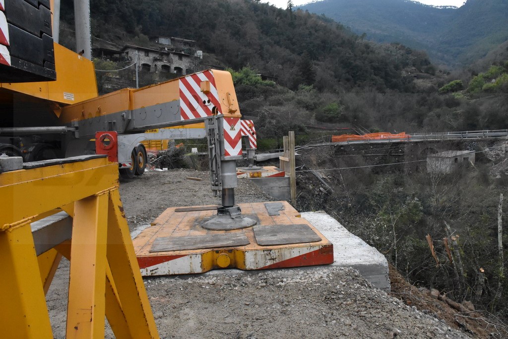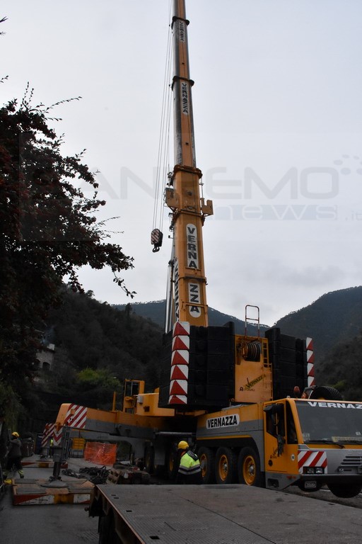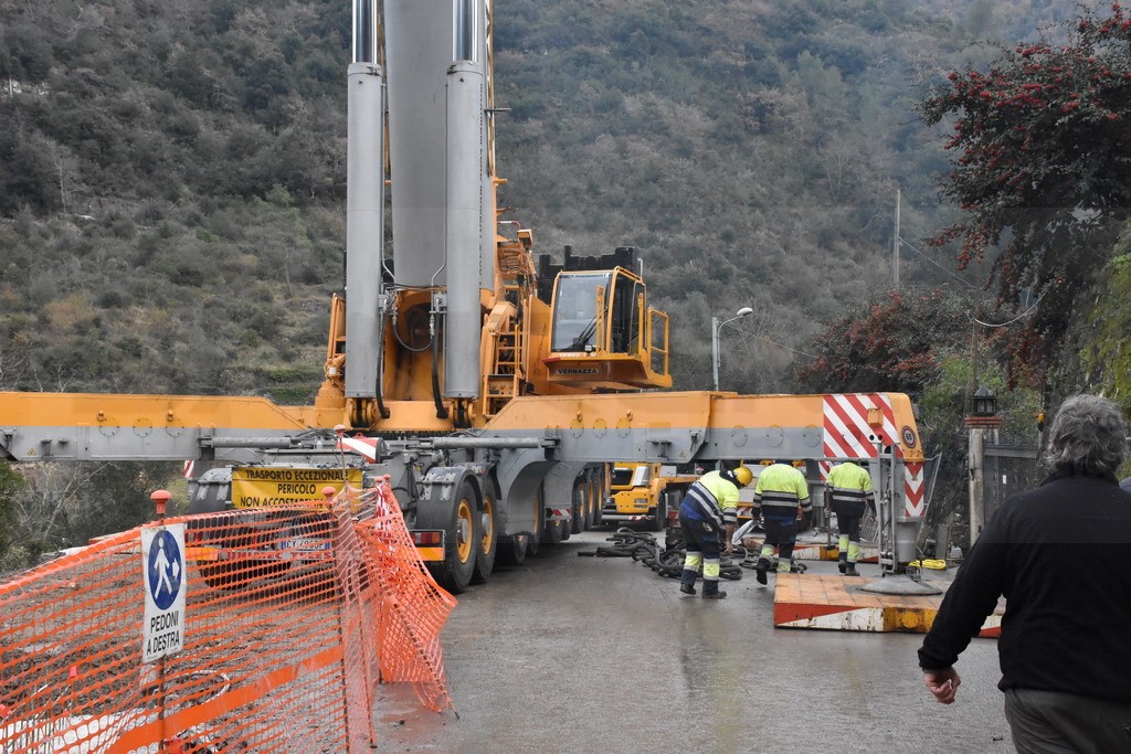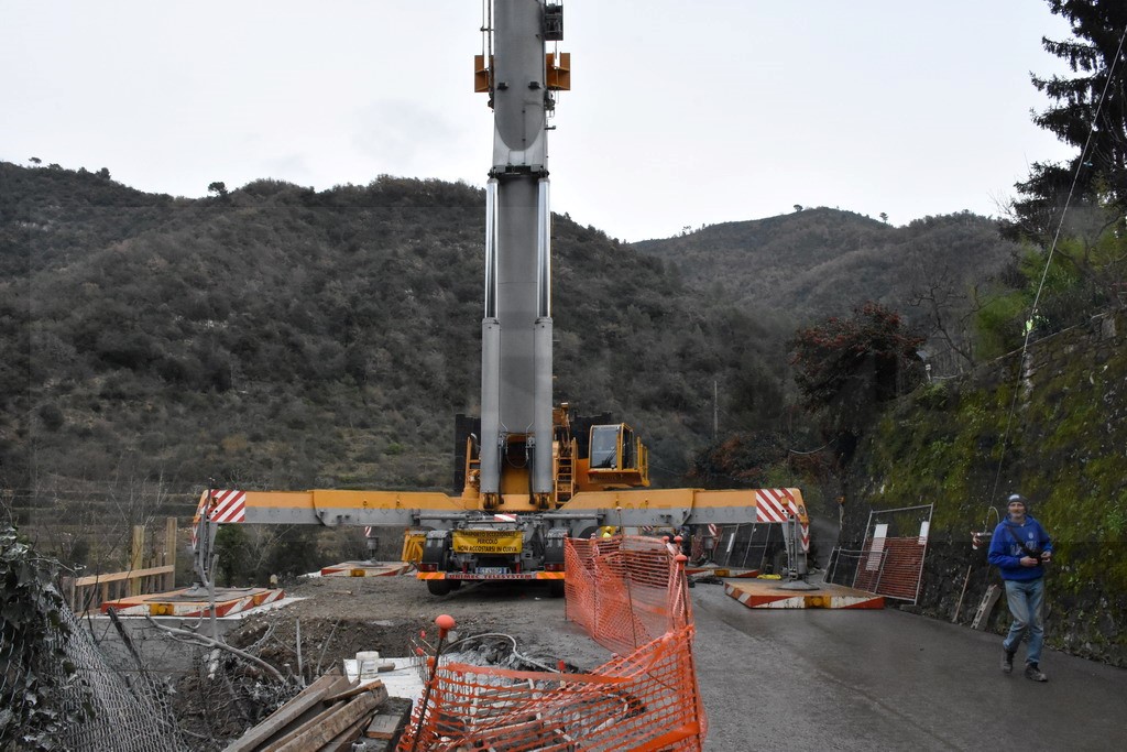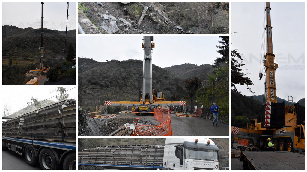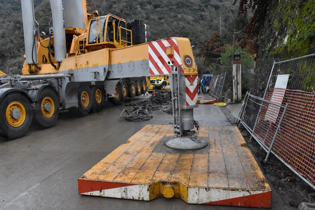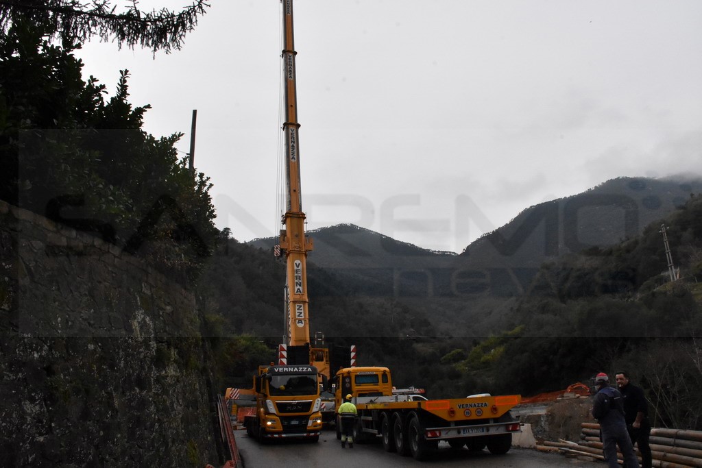 Rocchetta Nervina: con tre bilici il ponte è arrivato e la gru è pronta, da domani il via al montaggio (Foto)