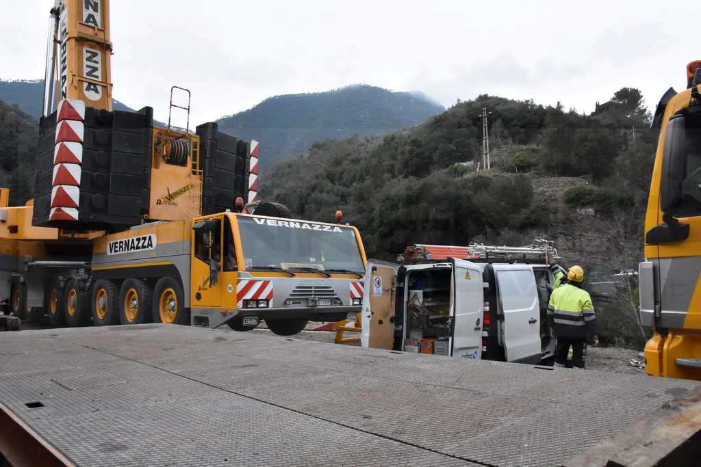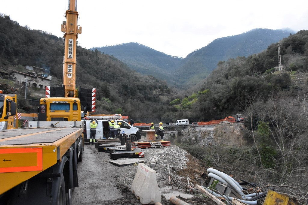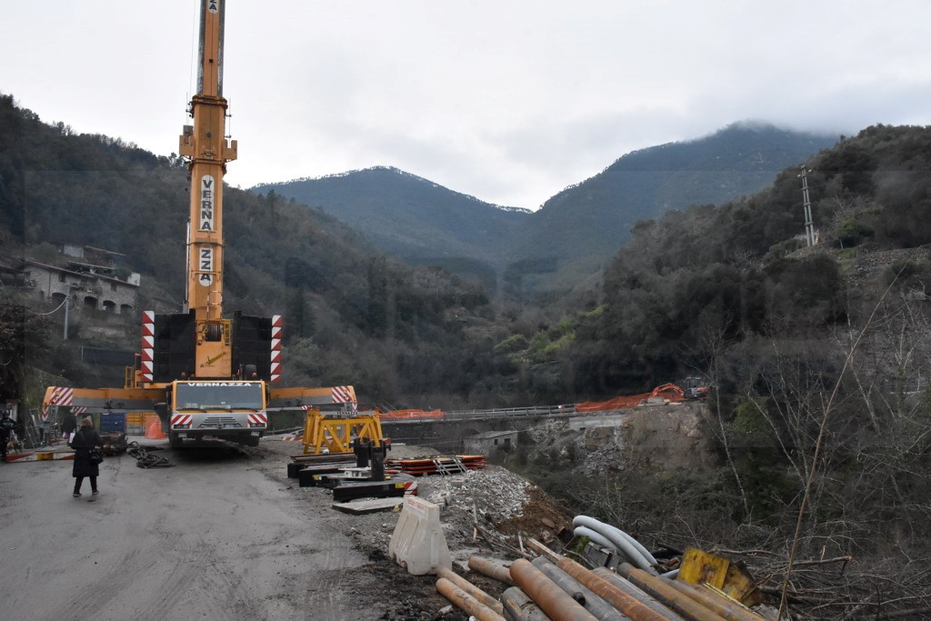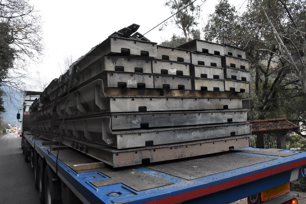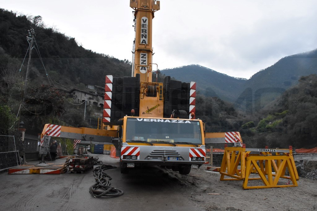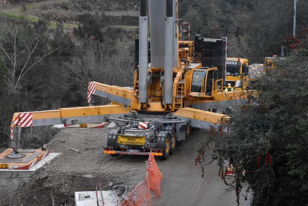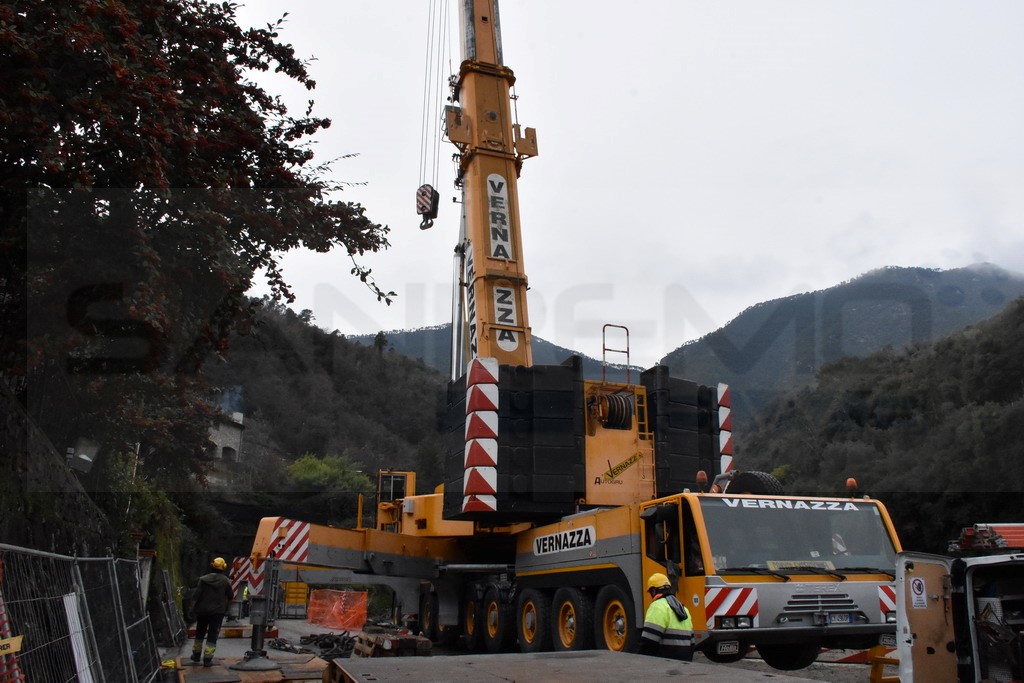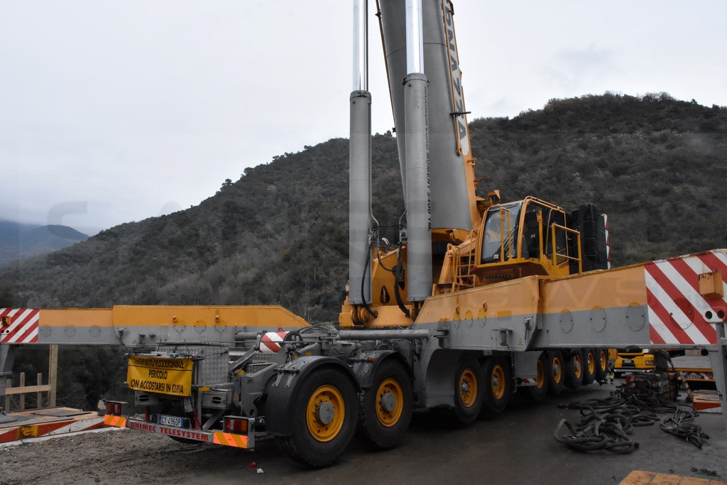 Rocchetta Nervina: con tre bilici il ponte è arrivato e la gru è pronta, da domani il via al montaggio (Foto)
