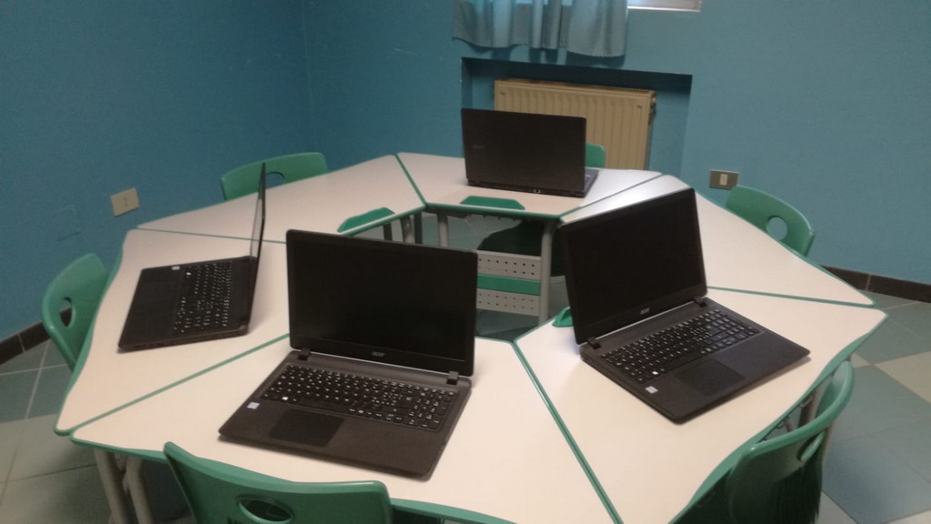 Partendo dal presupposto che i laboratori devono essere pensati come luoghi di innovazione e creatività, è stato possibile allestire un atelier creativo per le competenze chiave, allestendo un’aula fornita di attrezzature di altissimo livello, posta nella scuola secondaria di 1° grado a Roverino e facilmente raggiungibile da tutti i 14 plessi dell’Istituto grazie alla messa a disposizione degli scuolabus da parte del Comune di Ventimiglia.