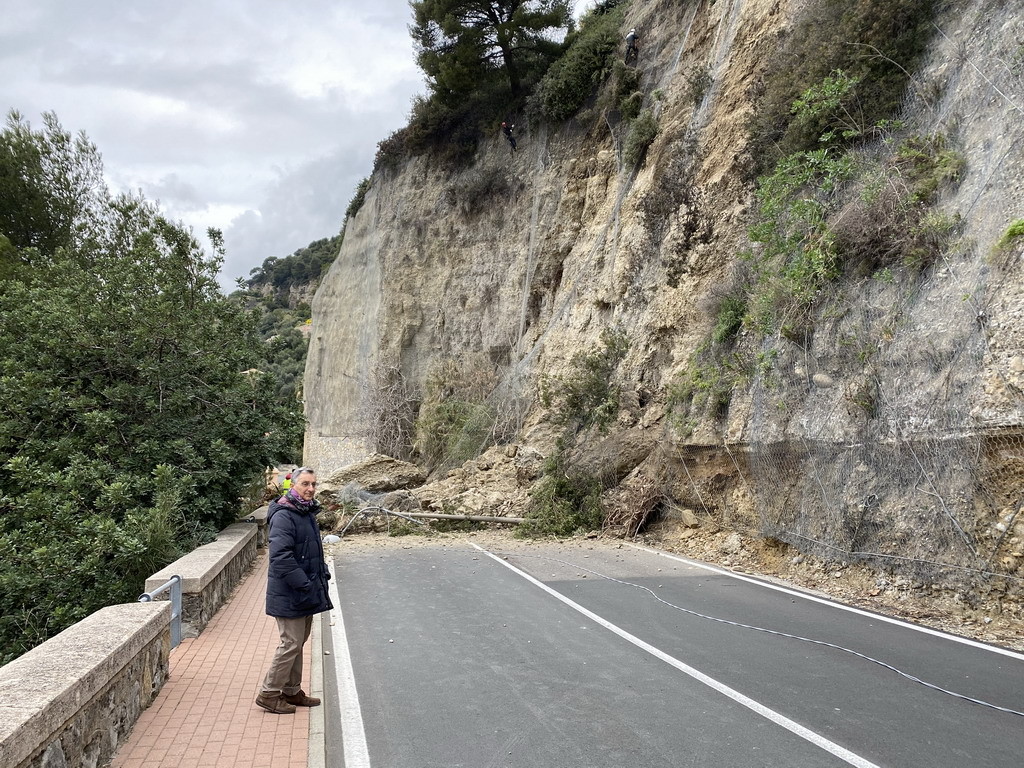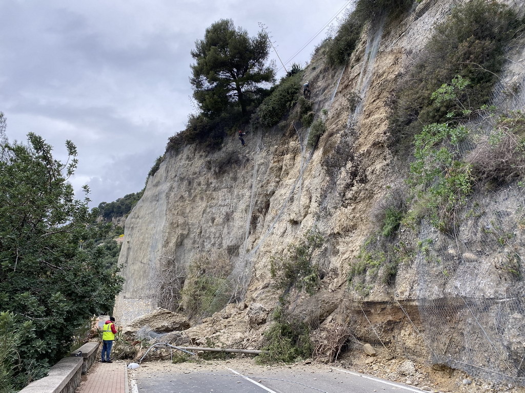 E’ sempre bloccata la strada statale Aurelia a Ventimiglia, nella zona di corso Toscanini nei pressi del Forte dell’Annunziata, dove ieri sera un grosso fronte composto da rocce e terra è sceso, invadendo completamente la carreggiata.