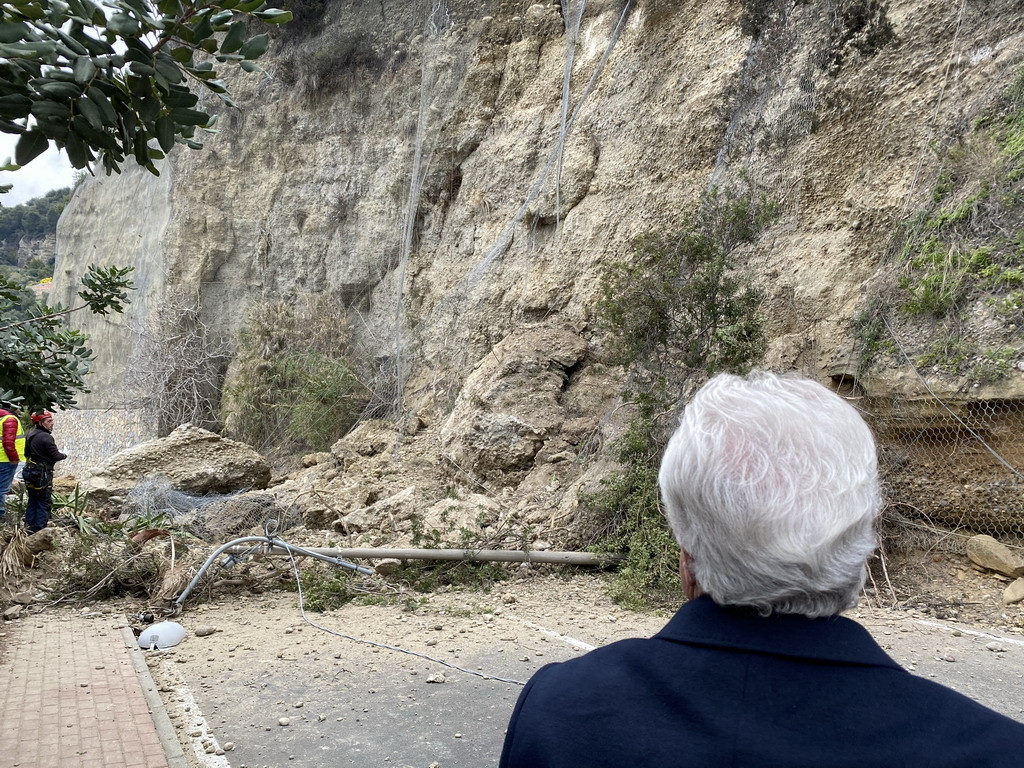 A breve la strada dovrebbe essere liberata ma servirà un importante lavoro, anche con indagini geologiche, per rendere sicuro il transito. Rocciatori già in azione.