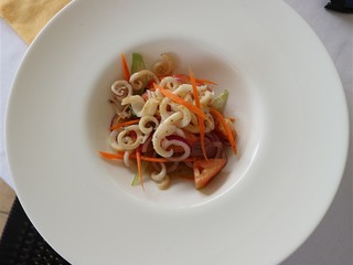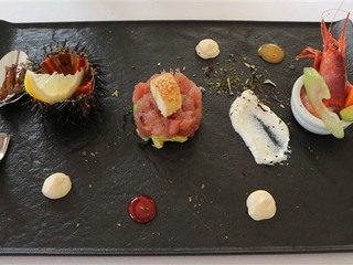 Nel menù non solo pescato del giorno, ma anche carne come il Sashimi di Fassona servita con burrata di tartufo, con flan di patate dolci, vellutata di Castelmagno e pancetta croccante, la Lombata di Black Angus americano, 40 giorni di frollatura, cotto alla brace con contorno di patate croccanti al rosmarino solo per citare alcuni piatti presenti nella carta davvero molto vasta.