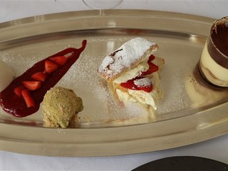 e per finire al dolce una sfogliatina con crema chantilly abbinata a un semifreddo al mango con coulis ai frutti di bosco.