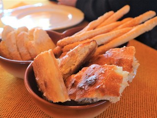 Si comincia con l'antipasto, un delizioso tortino morbido a base di verdure, che variano a seconda della stagione, accompagnato da una salsa al formaggio, si prosegue con due primi,