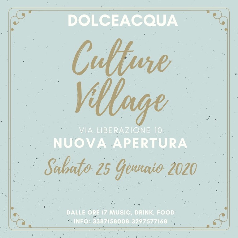 Culture Village è un centro socio culturale che si muove nell'ambiente, collabora con le realtà esistenti, respirando arte e cultura, sviluppando progetti organizzando eventi,conferenze laboratori e vetrine per artisti e artigiani.