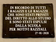 Alle 12.30 nell’atrio della scuola, alla presenza delle classi 4a A, 5a A e 5a B di via Veneto, è stata inaugurata una targa commemorativa che riporta le seguenti parole: “ In ricordo di tutti i ragazzi e le ragazze che sono stati privati del diritto allo studio e sono stati espulsi da scuola per motivi razziali” I bambini della scuola primaria hanno partecipato al concorso del Miur “I giovani ricordano la Shoah” e hanno letto il libro “Una goccia nel mare” di Enzo Iorio. L’iniziativa dell’Istituto Comprensivo Biancheri sottolinea il ruolo della scuola nel promuovere il valore della memoria come fondamento di ogni società civile, consapevole che solo dalla conoscenza e dalla consapevolezza del proprio passato si può costruire un futuro migliore.