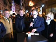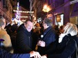 In via Matteotti, a pochi passi dall'Ariston, Amadeus ha partecipato questa sera alla cerimonia in onore di Domenico Modugno con l'accensione delle luminarie volute dal Comune con il testo di “Nel blu dipinto di blu” a fare da luce-guida verso il Teatro Ariston. Un'installazione luminosa che Palazzo Bellevue ha potuto finanziare grazie anche a diversi sponsor tra i quali anche la locale “UnoGas Energia”.